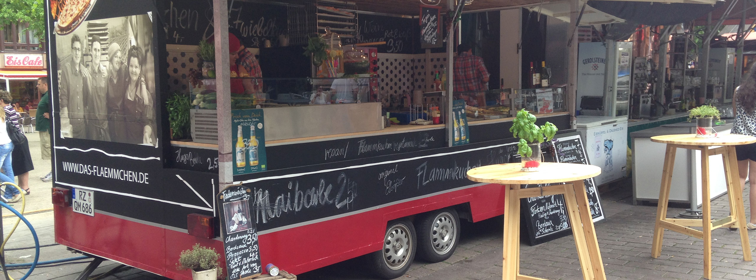 Flink "Ich brauche nicht viel Zeit, um mich herzurichten und bringe mein Equipment selber mit". Mein wichtigstes Accessoire ist ein großer Pizzaofen, der bis zu vier knusperfrische Vertreter meiner Art gleichzeitig in nur drei Minuten auf stilechte Flammkuchenbretter bringt. Begleitet werde ich stets von einem professionellen Team, das nicht nur für die reibungslose Organisation, sondern auch für die liebevolle Betreuung Ihrer Gäste sorgt.